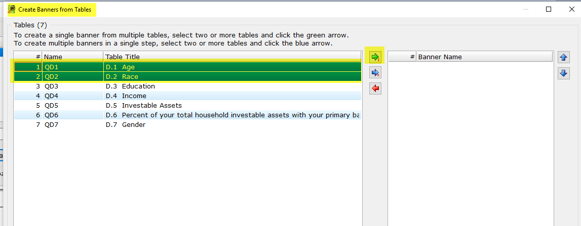 tables, select the Create Banners from Tables option from Setup|Banners.